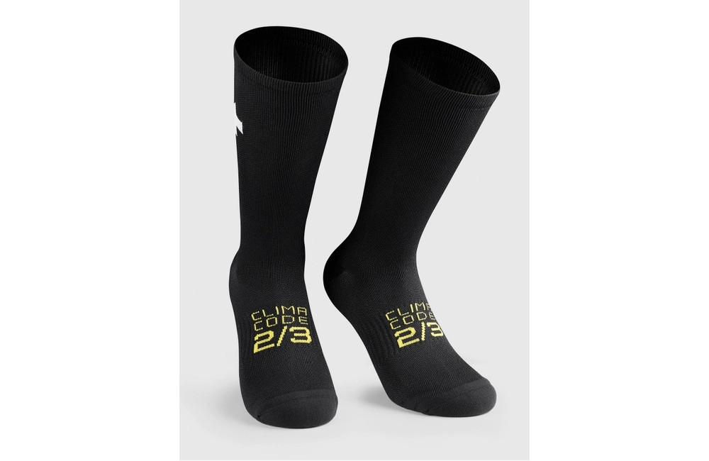The ASSOS Spring Fall P1 socks are designed to regulate temperature and wick away moisture during rides in cool conditions.