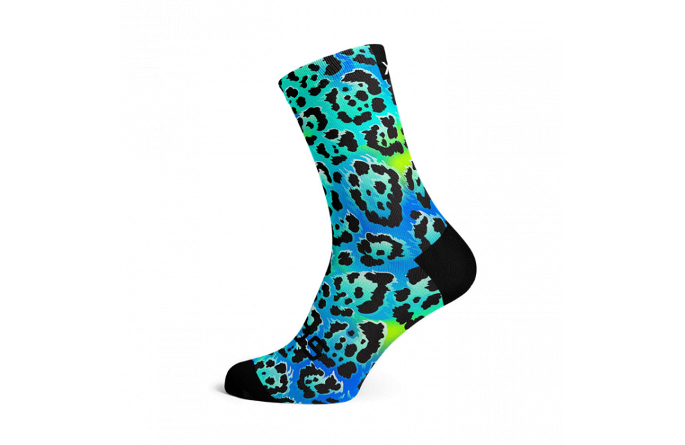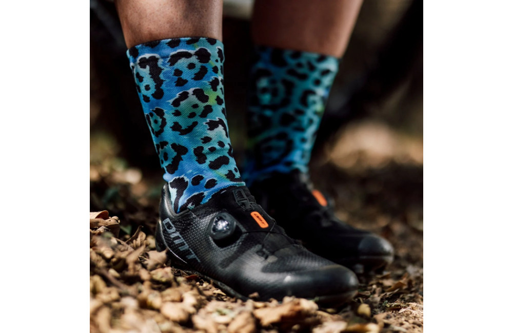 SOX FOOTWEAR Electric Leopard Blue Crew Cycling Socks