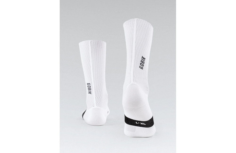 Gobik a conçu les chaussettes Vortex avec une hauteur étendue selon les normes UCI, avec un tissu perforé à faible résistance au vent, qui offre une régulation optimale de la température.
