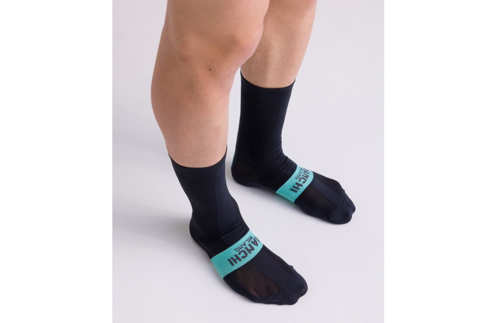 Les chaussettes cyclistes BIANCHI MILANO CLASS sobres pour des conditions estivales.