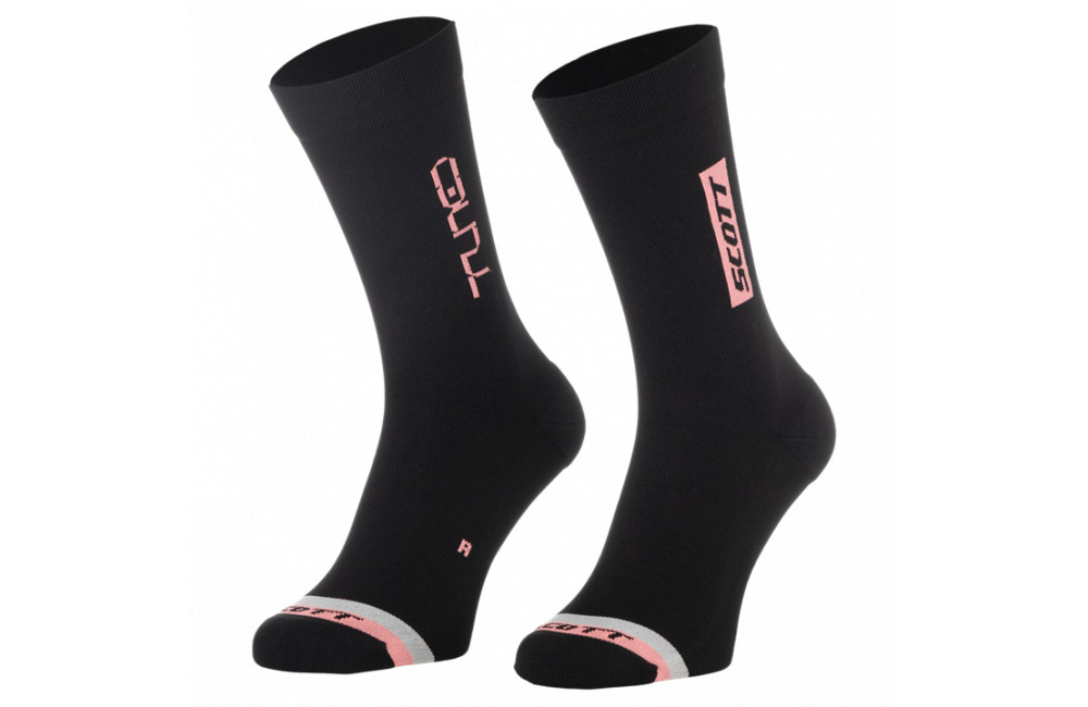 Confort et pieds au sec sur les trails avec les chaussettes mi-hautes SCOTT Trail Tuned, respirantes et bien ajustées.